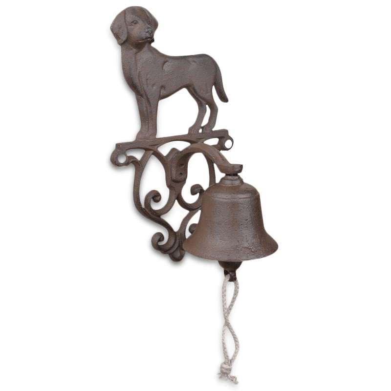 Funktional, dekorativ und super schön. Diese Türglocke macht gleich beim ersten Anblick klar, wer hier ein gern gesehener Gast ist - der Hund. Mit kleinen Verzierungen und dem Hund über der Glocke schmückt es garantiert jede Tür. Aus massivem Gusseisen und mit einem Seil für die Glocke, damit jeder Besucher einfach auf sich Aufmerksam machen kann.