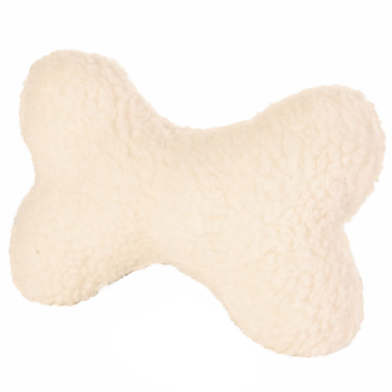 Dieser Plüschknochen mit Stimme hat einen Bezug aus weichem Schaffell-Imitat. Der Plüschknochen hat eine Länge von 20 cm und ist somit auch für kleine Hunde geeignet. Die Stimme im Inneren des Knochens weckt den Spielinstinkt des Hundes immer wieder aufs Neue.